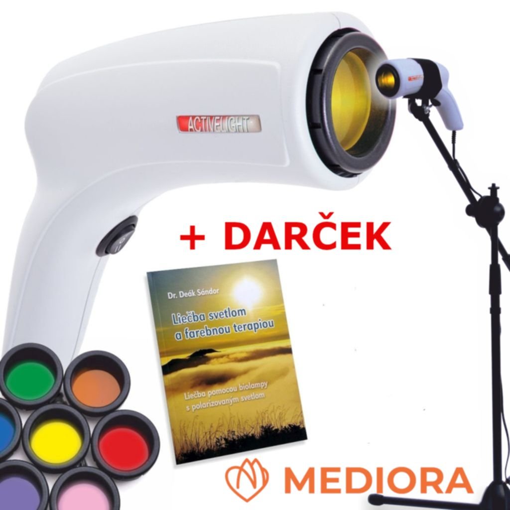 Teraz mimoriadna šanca kúpiť liečebnú lampu ActiveLight spolu s farebnými filtrami a praktickým stojanom za fantastickú cenu. Navyše vám k lampe pribalíme parktickú "kuchárku liečenia biolampou", knihu "Liečba svetlom a farebnou terapiou" od maďarského lekára Dr. Sándora Deáka a ďaľší darček (pulzný oxymeter P-03TFT alebo čelovú lampu) v celkovej hodnote 24€. Liečebná lampa ActiveLight zosobňuje najnovšie poznatky z oblasti liečby polarizovaným svetlom a kolorterapie a napomáha k vyriešeniu mnohých zdravotných ťažkostí.