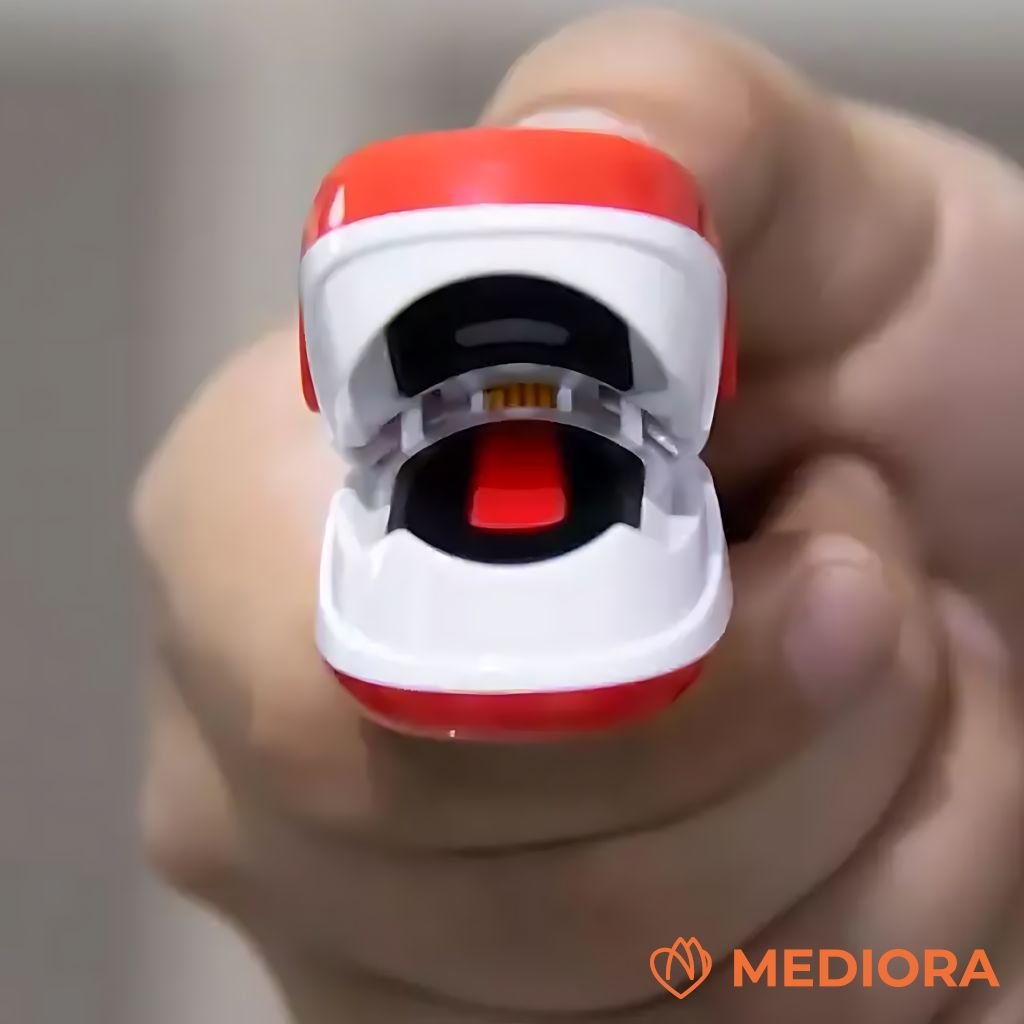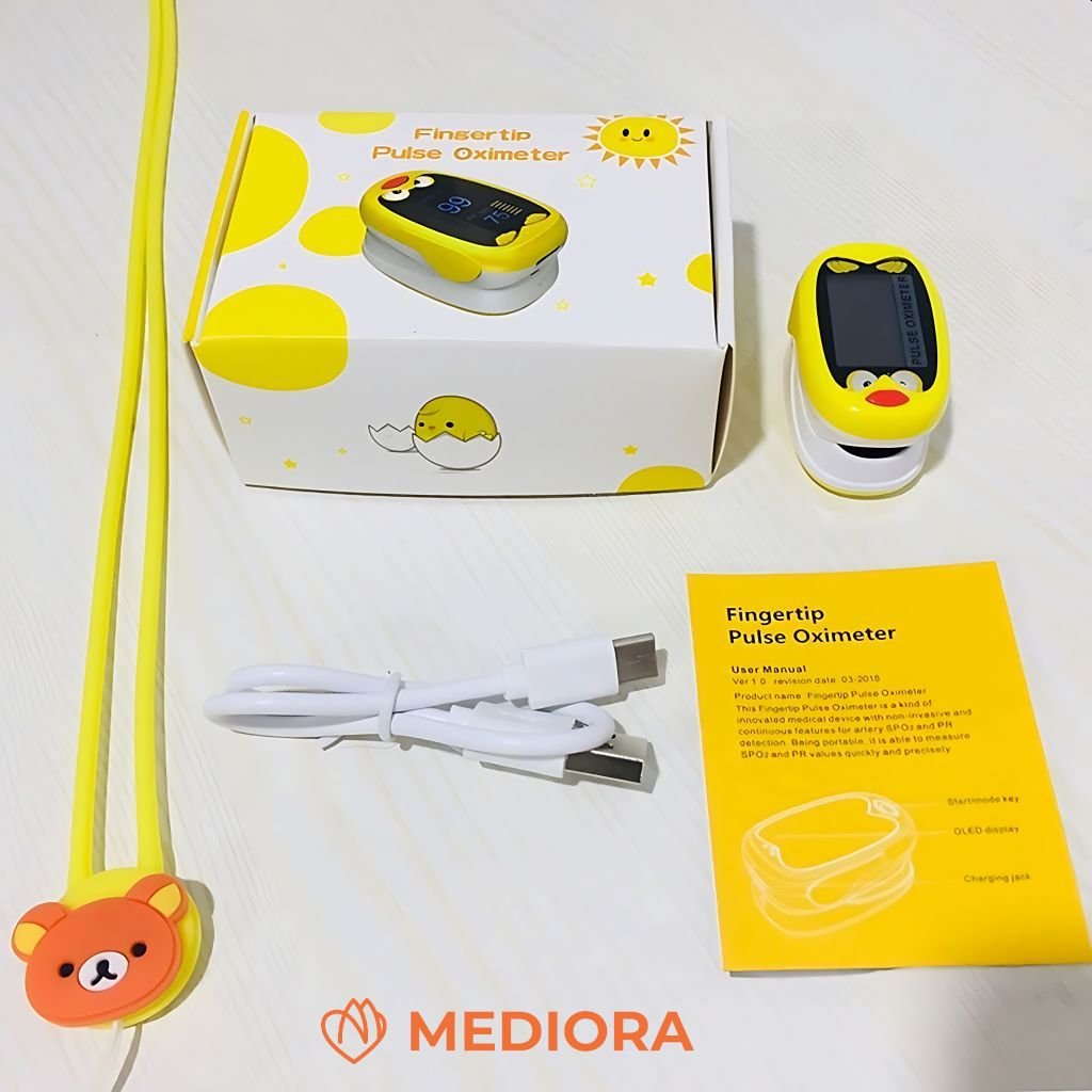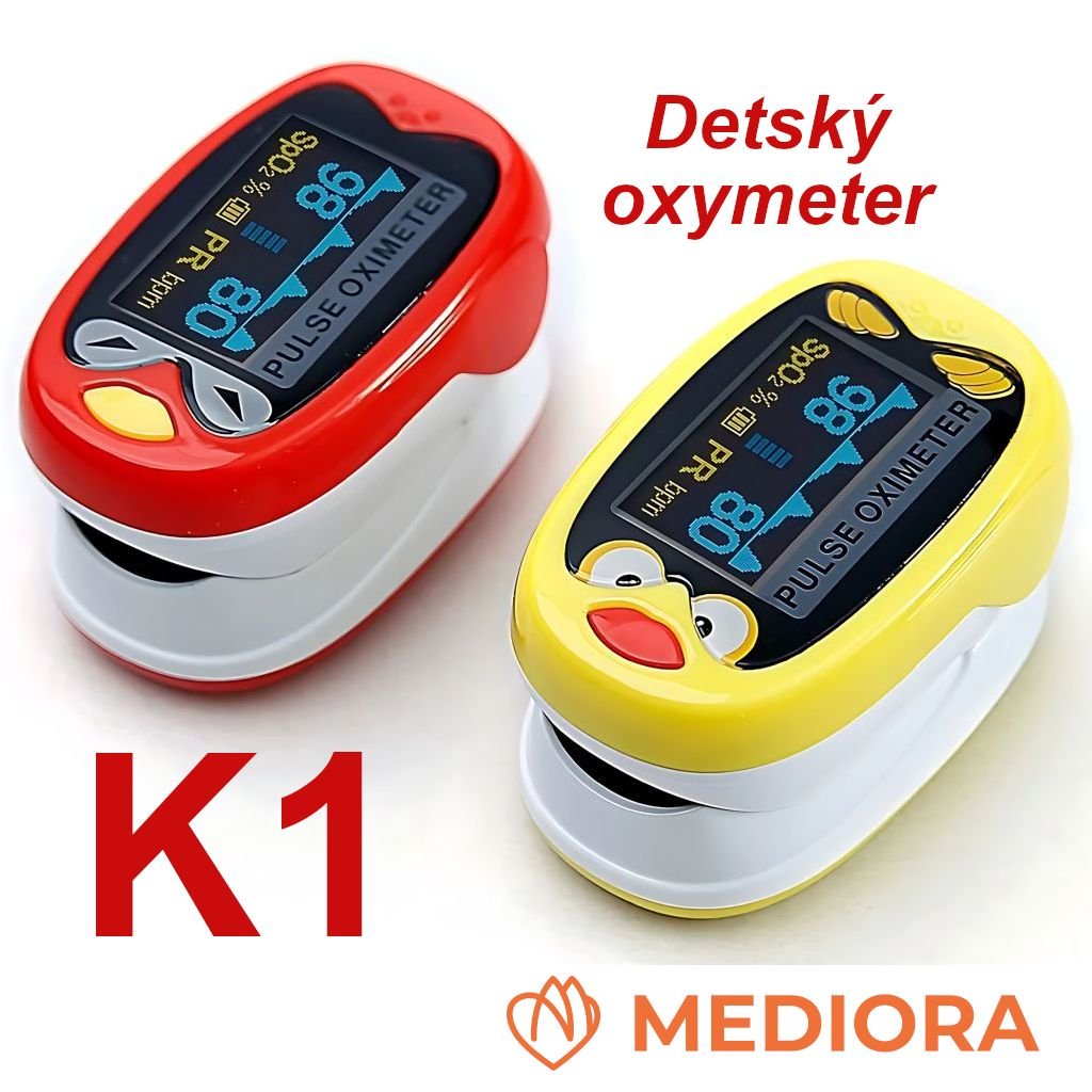 - Oxymeter K1 je dizajnovaný pre detské prsty. Oxymeter je malý, merací tunel/štipec je navrhnutý pre hrúbku detského prsta, prístroj má vstavanúnabíjaciu batériu.