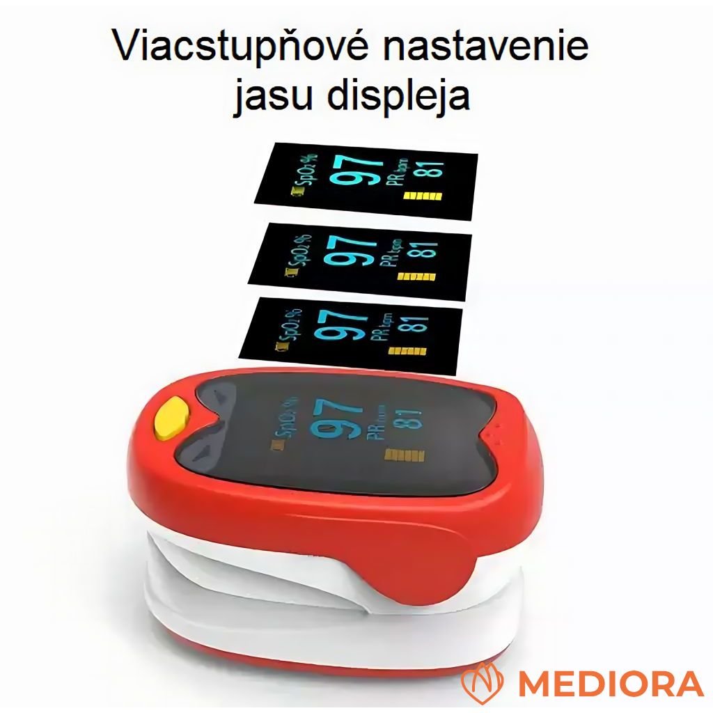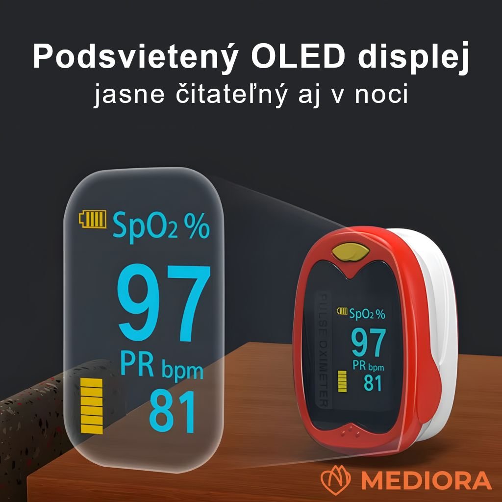 - OLED displej, čisté zobrazenie výsledkov merania hodnôt SpO2 a PR s pulzným priebehom.